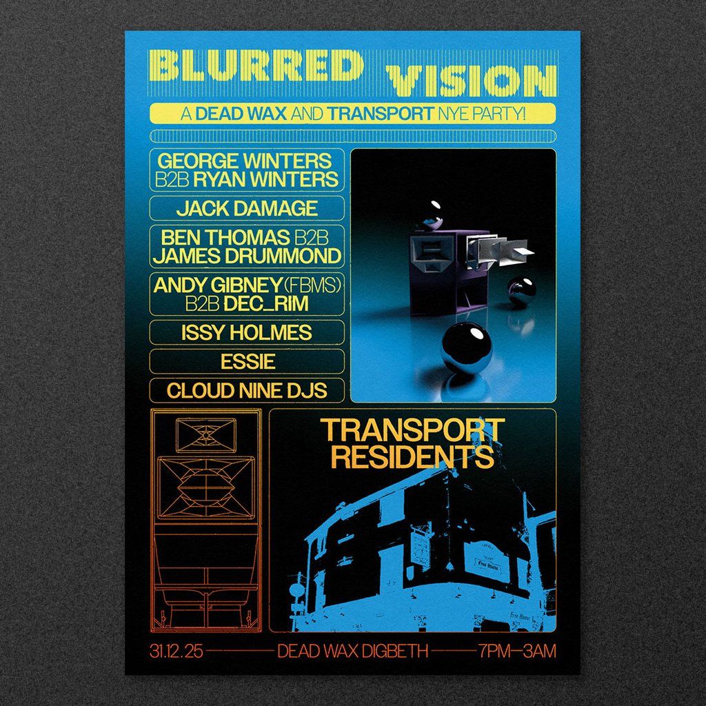Blurred Vision presents its first NYE party at Dead Wax Digbeth alongside Transport sounds. Three rooms of collective multi genre sets, with 15+ DjsMusic Genres : Techno, Acid House, Electro House, Disco, Disco House