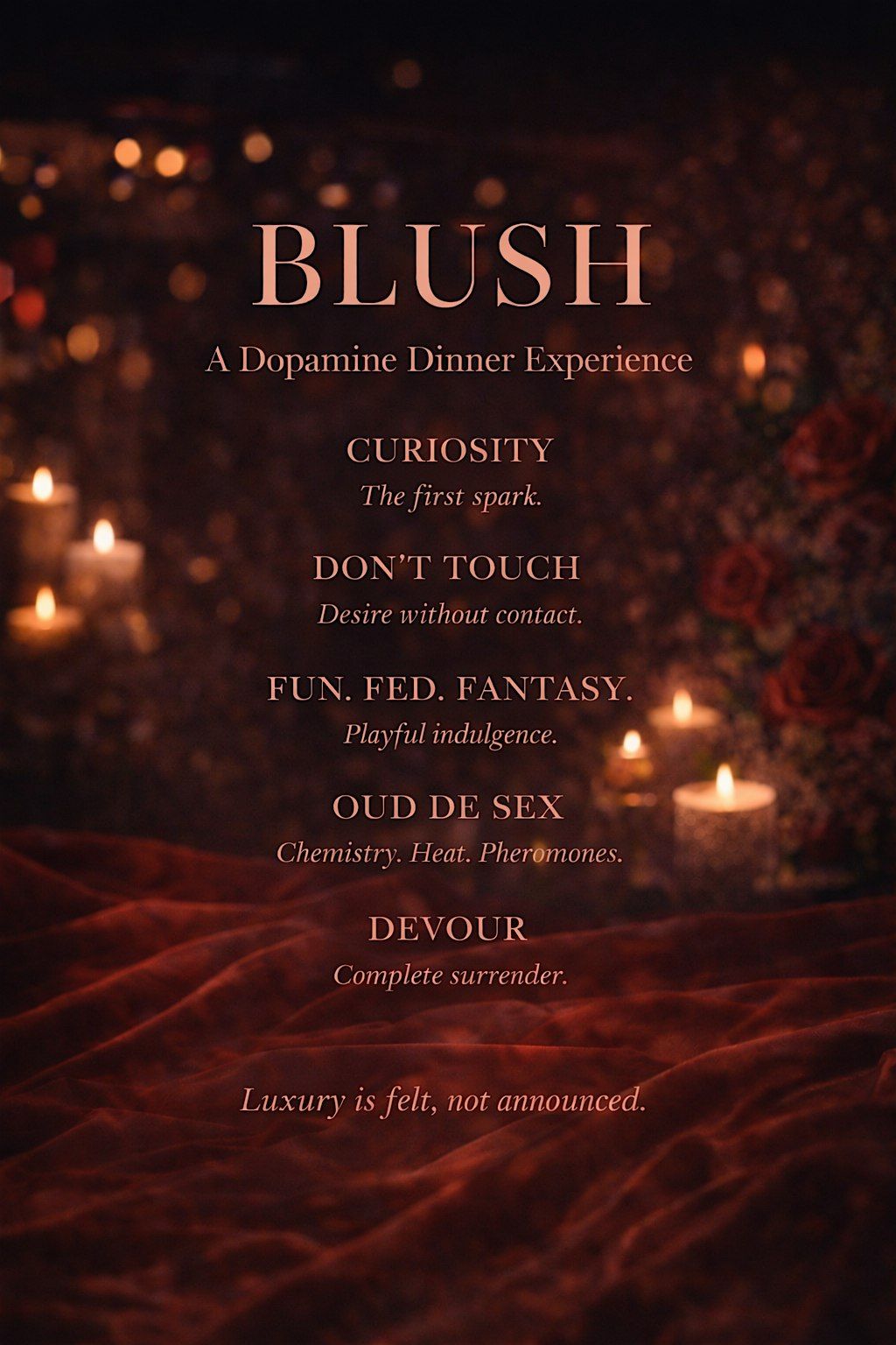 Ready for a night that’ll awaken your senses? Join us for Blush, an exclusive in-person dinner designed just for couples. Expect a cozy atmosphere, delicious bites, and moments that bring you closer together. It's all about connecting, savoring, and enjoying each other's company in a relaxed, intimate setting. Let’s make memories that linger long after the last bite!