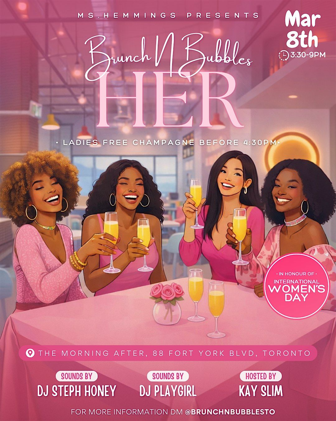 On International Womenβs Day, we gather to celebrate ambition, beauty, strength, success, and sisterhood in true Brunch N Bubbles fashion. π