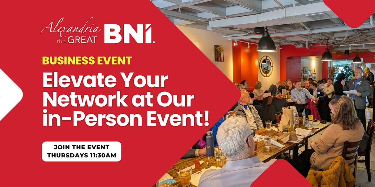 Welcome to BNI - Alexandria The Great - Business Networking event! Join us for a fantastic opportunity to connect with like-minded professionals, exchange referrals, and grow your business network. This event is perfect for entrepreneurs, small business owners, and anyone looking to expand their business reach. Don't miss out on this chance to make valuable connections and boost your business success. Register now and take your networking game to the next level! Register: https://alexandriathegreat.biz/