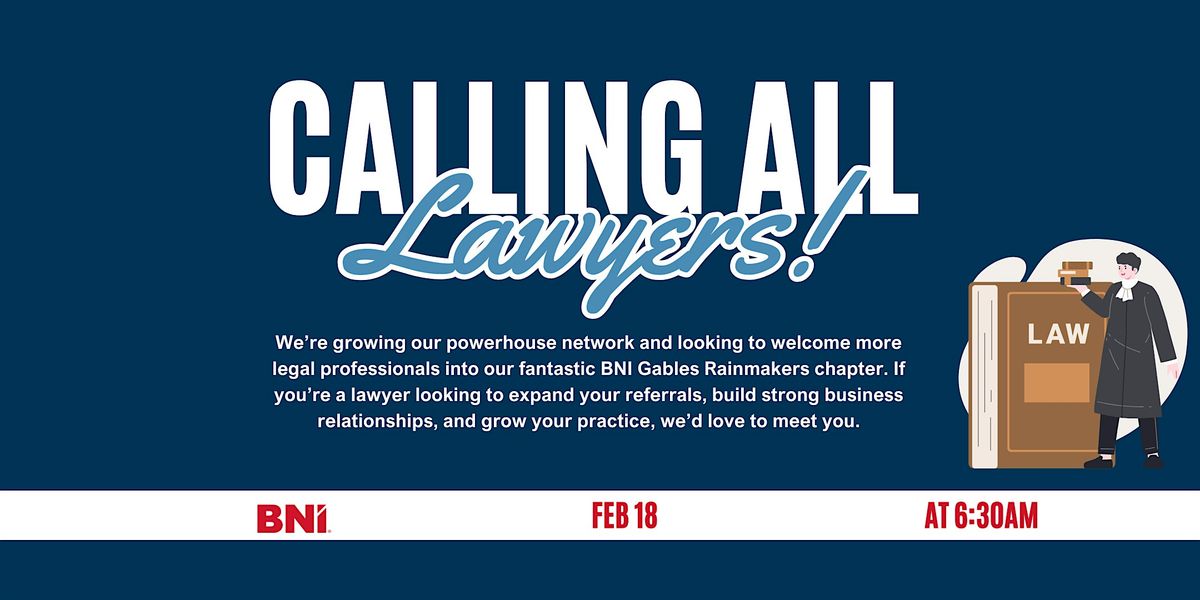 We’re growing our powerhouse network and looking to welcome more legal professionals into our fantastic BNI Gables Rainmakers chapter. If you’re a Lawyer looking to expand your referrals, build strong business relationships, and grow your practice, we’d love to meet you.