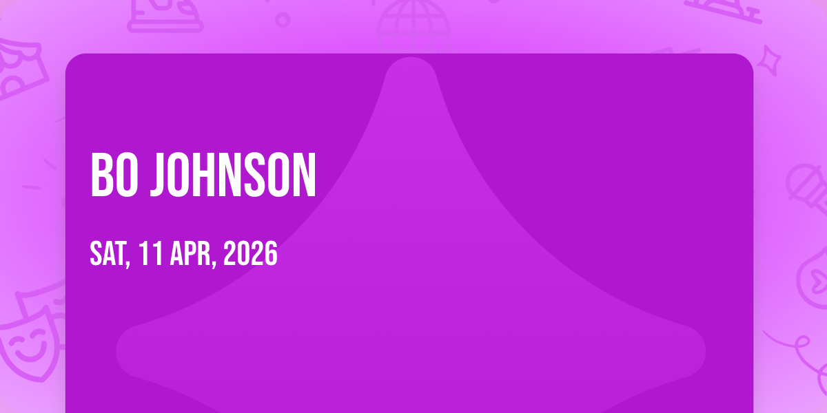 ✨ Discover the extraordinary at Bo Johnson, where magic meets reality in ways you've never imagined! 🏛️ Set in Punch Line Comedy Club - Sacramento nestled in bustling Sacramento, CA, this event promises to be a landmark occasion. 📅 Taking place on April 11th, 2026 at 04:00 PM, it's going to create an atmosphere where every moment becomes a cherished memory. 🌟 Immerse yourself in an experience crafted with attention to every detail, designed to surprise and delight at every turn. They have worked tirelessly to ensure this event exceeds all expectations, bringing together elements of entertainment, innovation, and pure joy. 🎊 Don't miss your chance to be part of this remarkable journey!http://maps.seatics.com/PunchLineComedyClub-Sacramento_GA-Pref_2023-09-01_2023-26-03_1741_01092023_102123_SVGC_tn.png