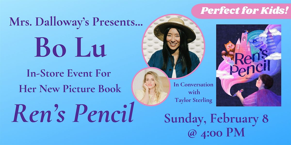 Join us at Mrs. Dalloway's Bookstore on Sunday, February 8 at 4:00 PM when children's book author Bo Lu comes to the store to share her latest picture book for kids Ren's Pencil. Bo will be joined in conversation by Taylor Sterling and will sign copies of her book after the presentation.