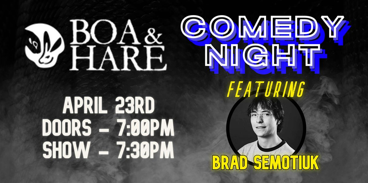 Welcome to Comedy Night at Boa & Hare! Get ready for a night filled with laughter and delicious food. Join us for a hilarious lineup of Canada's best and brightest comedians, including headliner Brad Semotiuk, as seen on Just for Laughs and CBC Comedy. Sit back, relax, and enjoy a fantastic show at one Chinatown's newest and brightest Cafe's.
