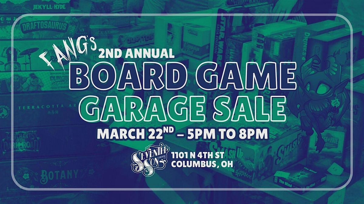 Head out to FANGs 2nd annual board game garage sale! We will have multiple sellers and hundreds of games! We're selling games from 5pm - 8pm. Swing into the event room on the first floor and pick up some great "new to you" games.
