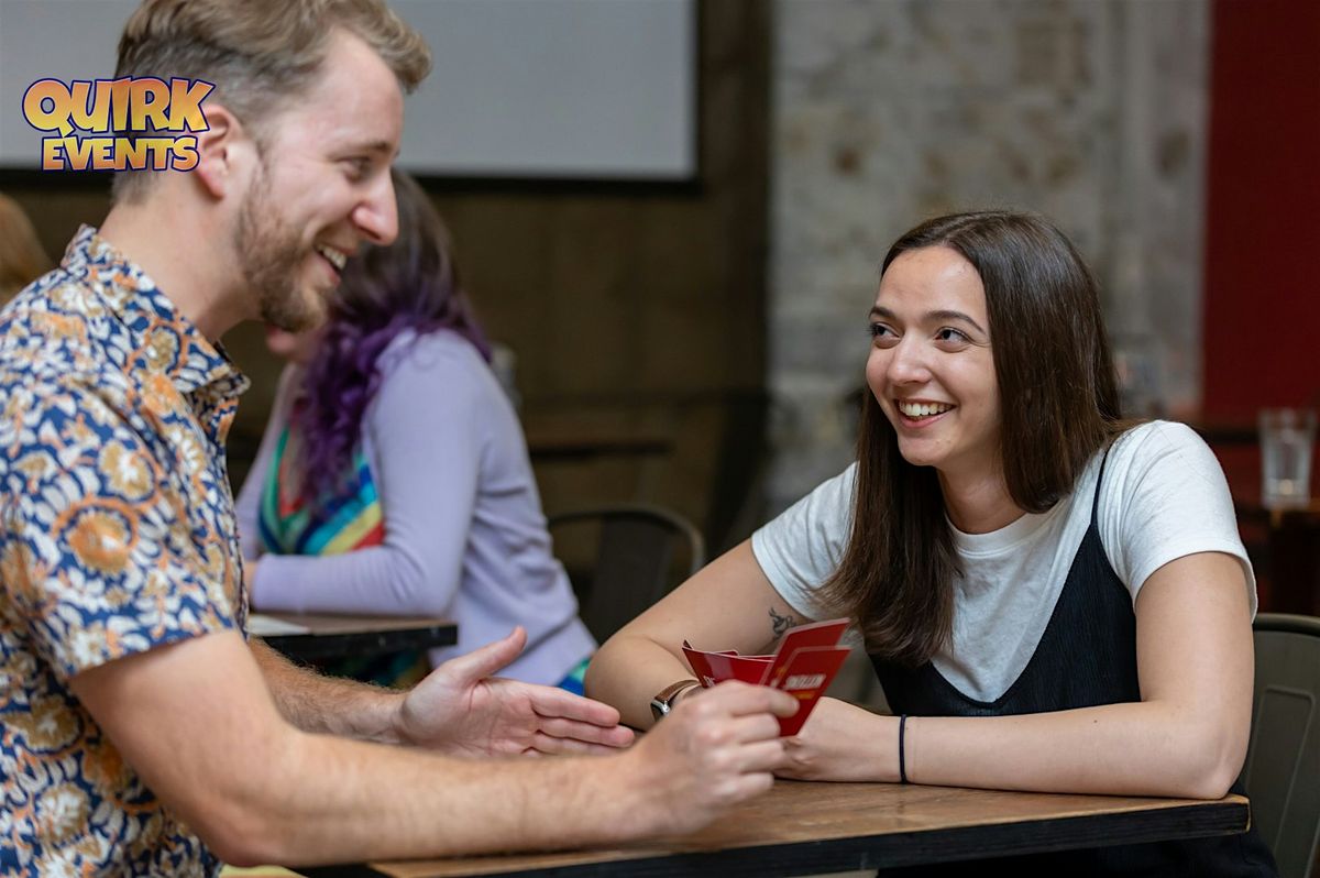 Picture this: You sit down for a night of games. A gaming concierge walks you through several games over the course of the night. You play classics you love and discover brand new games you've never heard of, playing each with a different group of fun singles. All while in a great establishment with plenty of delicious options on tap. At the end of the night, you give your gaming concierge a list of the folks you met that you'd like to date and a list of those you met that you'd like to just hang out with as friends. If any two people put down the same name as each other in either column, then your gaming concierge will make sure you get each other's e-mail address and you can coordinate a time to hang out.