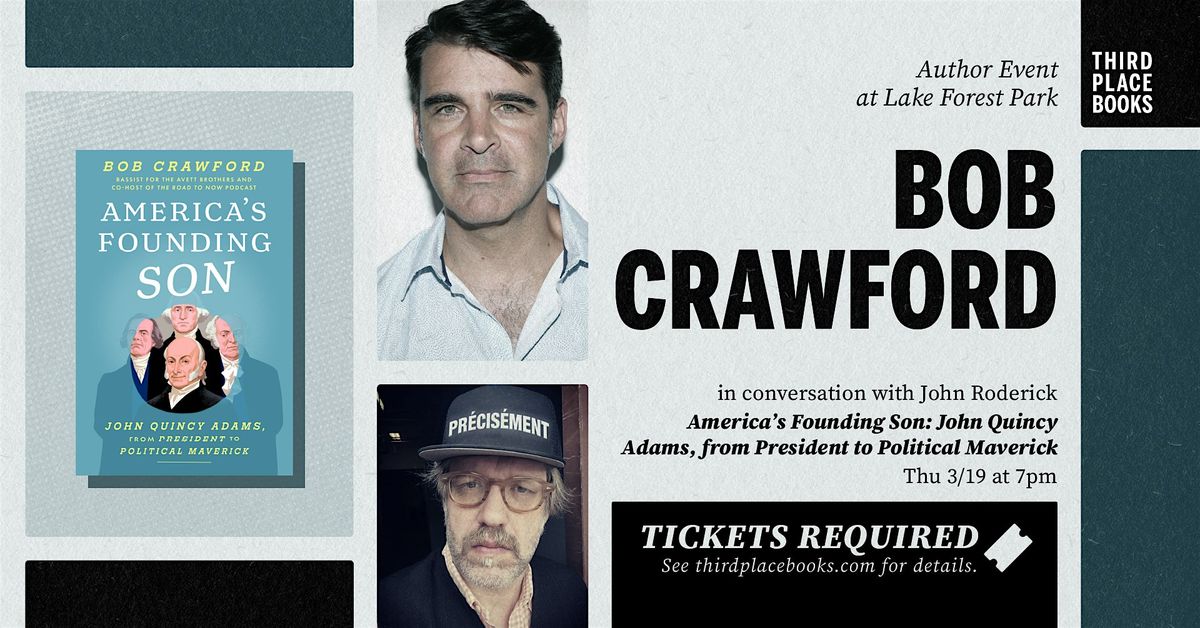 Third Place Books welcomes Bob Crawford, host of the podcast Founding Son: John Quincy's America and bassist for the Grammy-nominated band The Avett Brothers, for a conversation about his new book . Bob will be joined in conversation by Seattle-based musician, podcaster, and writer John Roderick. Tickets are required in advance.