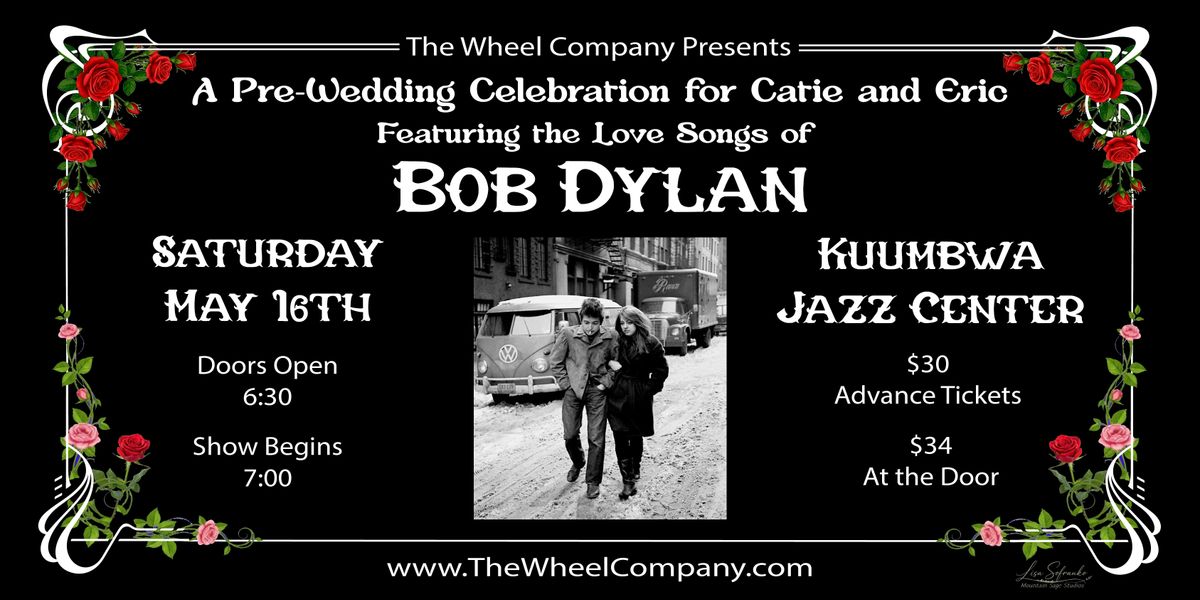 If you have ever had your heart strings pulled by Dylans love songs, then you will love our set list featuring songs performed by a number of talented musicians, Anthony Ayra, Jim Lewin and Diana Z, Dan Frechette, Larry Graff, Pat Nevins behind the rhythm section of Brett Bailey on drums and Pete Novembre on bass. Catie and Eric, two beloved Santa Cruz locals are celebrating their wedding with us and these songs. Tickets available at thewheelcompany.com