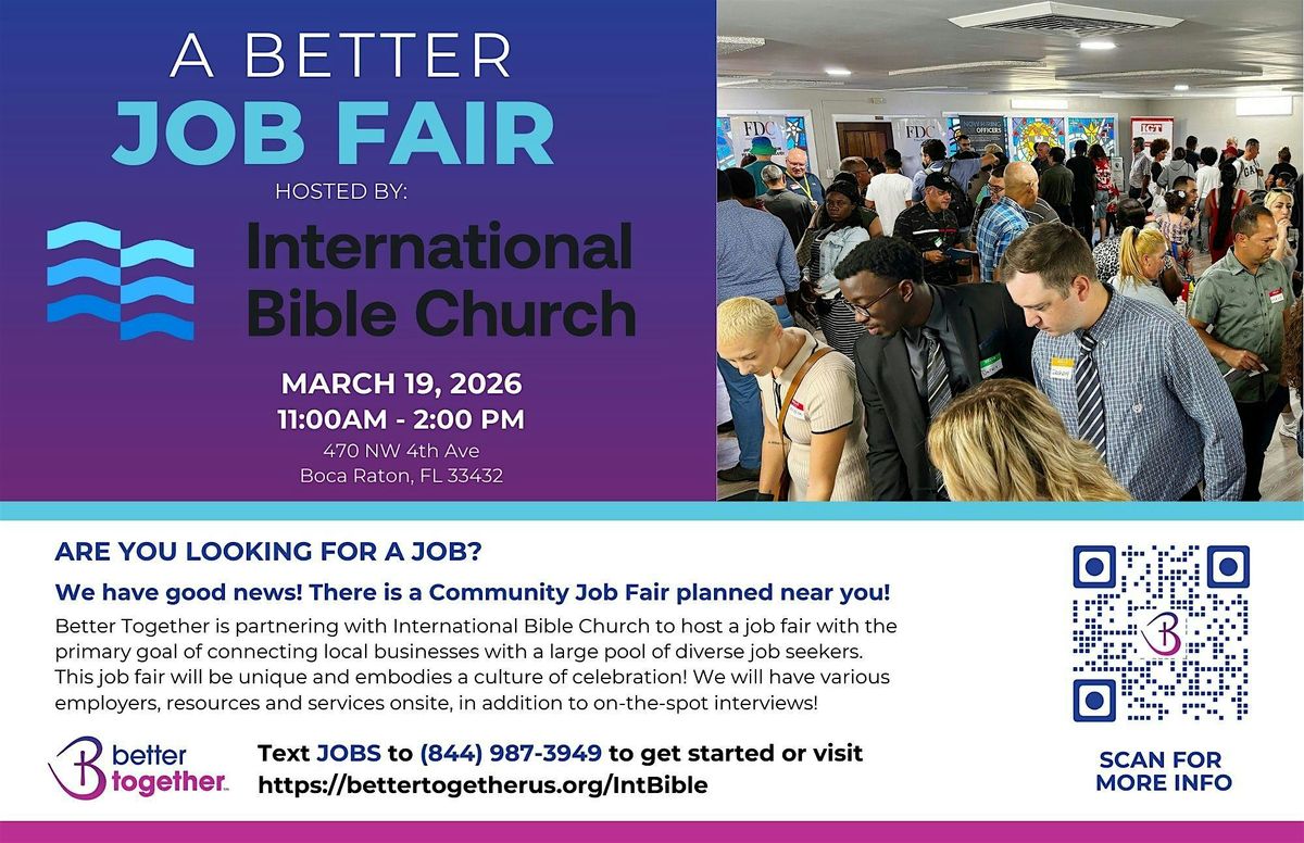 Thu, 19 Mar at 11:00 am Community Job Fair - International Bible Church, Boca Raton, FL
