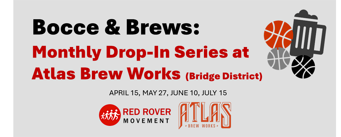 - Cost: $10 to play bocce (all proceeds support Red Rover Movement)