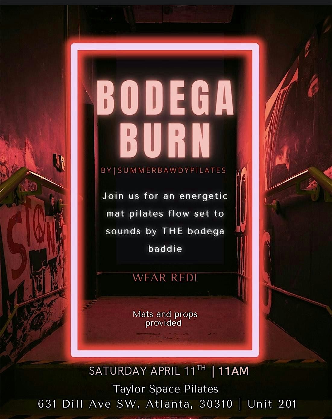 Join us for an energetic mat pilates flow set to sounds by THE bodegabaddie.