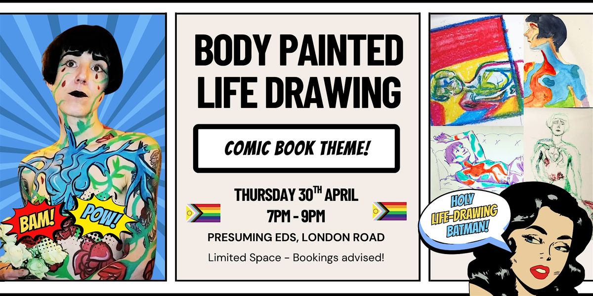 For this event, the body art will follow a comic book theme. Holy life-drawing Batman!