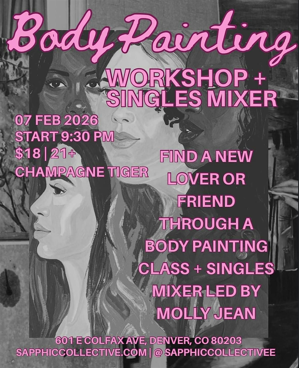 Sapphic Collective is hosting a body painting class / singles mixer led by Molly Jean (XBar’s resident body painter) @missmollyqueen on Instagram.