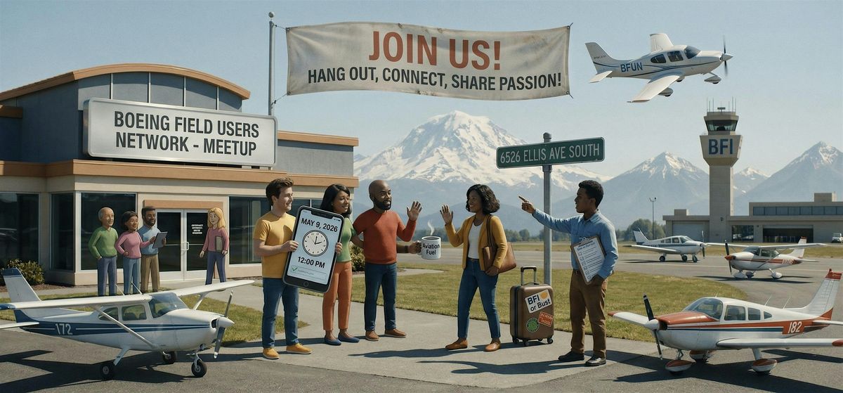 Hey there! Join us for the Boeing Field Users Network - Meetup happening at 6526 Ellis Ave. South. It’s all going down on May 9, 2026 at 12:00 PM (Pacific Time). Come hang out, connect with fellow aviation enthusiasts, and share your passion for all things Boeing Field. Whether you're a regular or new to the scene, it’s a great chance to meet cool people and have some fun. Don’t miss out!