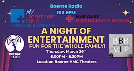 Get ready for a fun night of music, an illusionist, and surprises at Boerne Radio's Night of Entertainment - you won't want to miss it!
