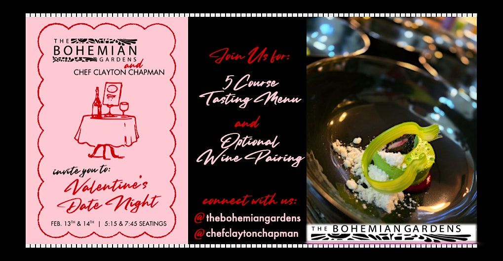 The Bohemian Gardens proudly presents an Evening of Culinary Distinction prepared and executed by Chef Clayton Chapman. Join us and celebrate those you love most with an exclusive 5-Course Prix-Fixe menu. This intimate dining experience provides a behind-the-scenes view of the refined flavors and artistry, meticulously crafted in our kitchen. In this two-hour service, we create an elevated, unrushed experience unlike any other in Omaha.