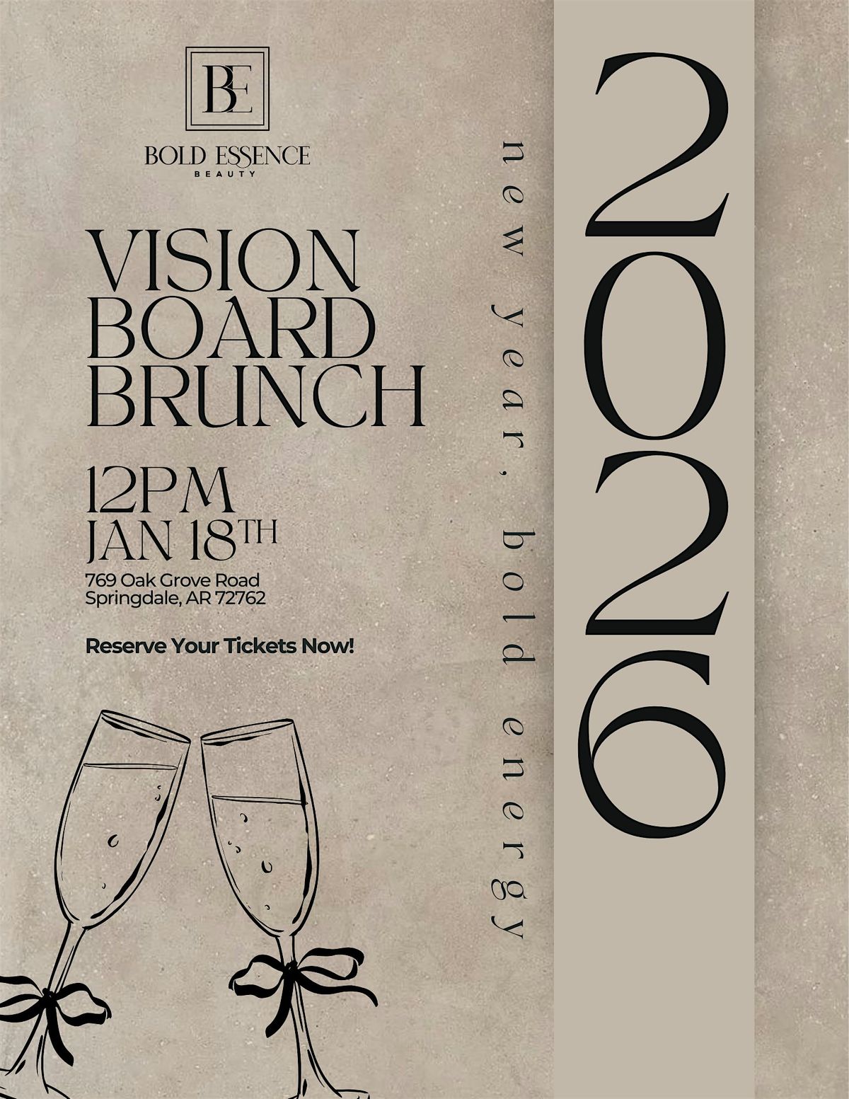 Step into the new year with intention, clarity, and confidence. Join us for an intimate Vision Board Brunch inside the beautiful Bold Essence Beauty studio—a luxury, creative experience designed to help you reset, refocus, and realign your goals for 2026.