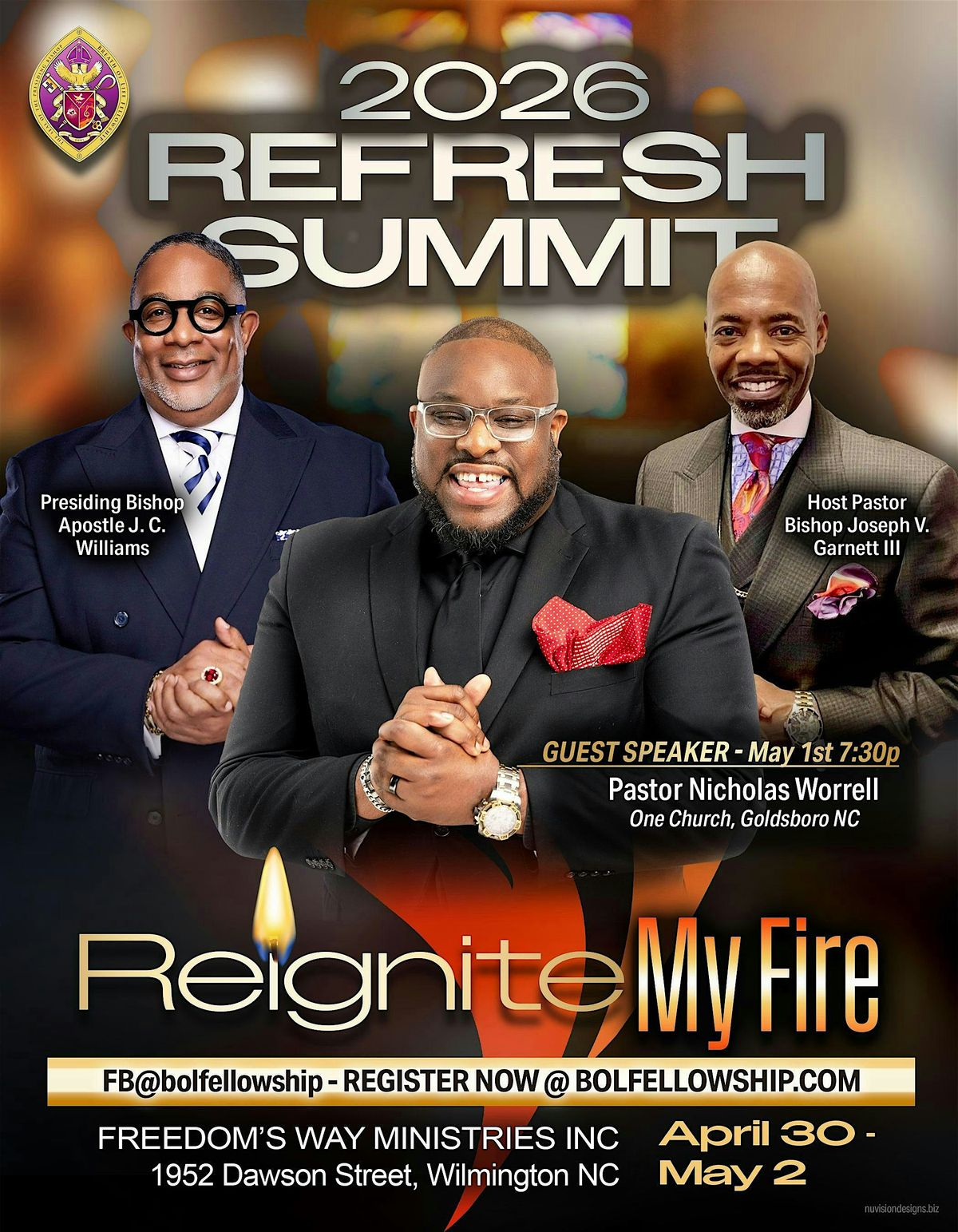 You are invited to Reignite Your Fire and be renewed in mind, body, soul, and spirit. Come experience a fresh stirring that rekindles your passion, restores your strength, and realigns you with the vision God has called you to serve. Itβs time to burn again with purpose and power. Your breakthrough awaits!