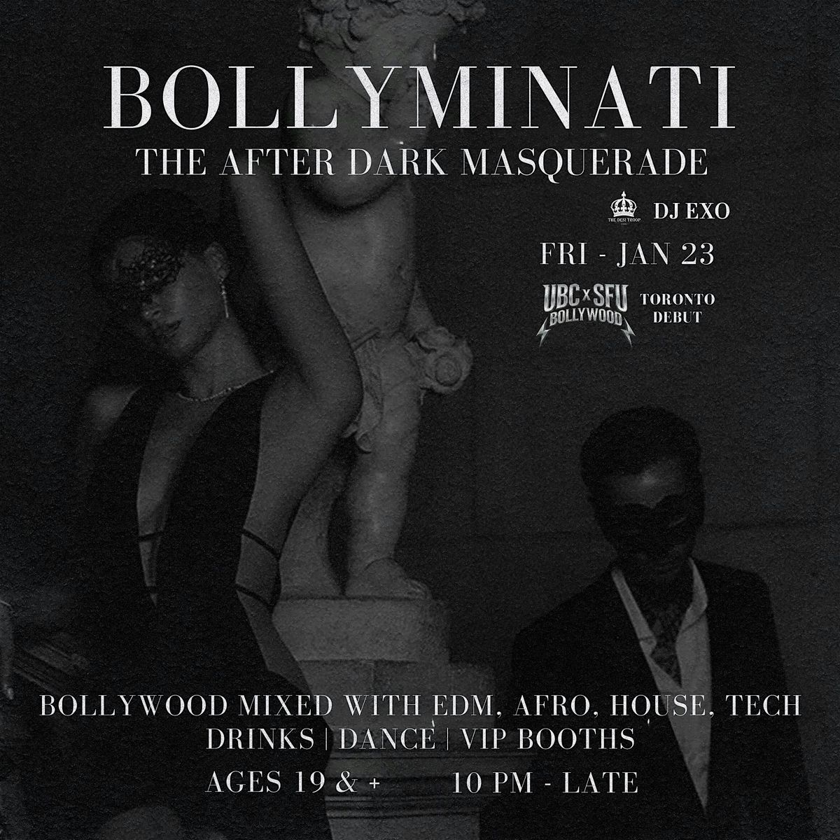 Bollyminati is your late-night escape into a darker, bolder Bollywood universe and UBCxSFU Bollywood's Official Debut in Toronto with The Desi Troop — where the masks come on, the bass hits harder, and the dancefloor turns into a secret society.