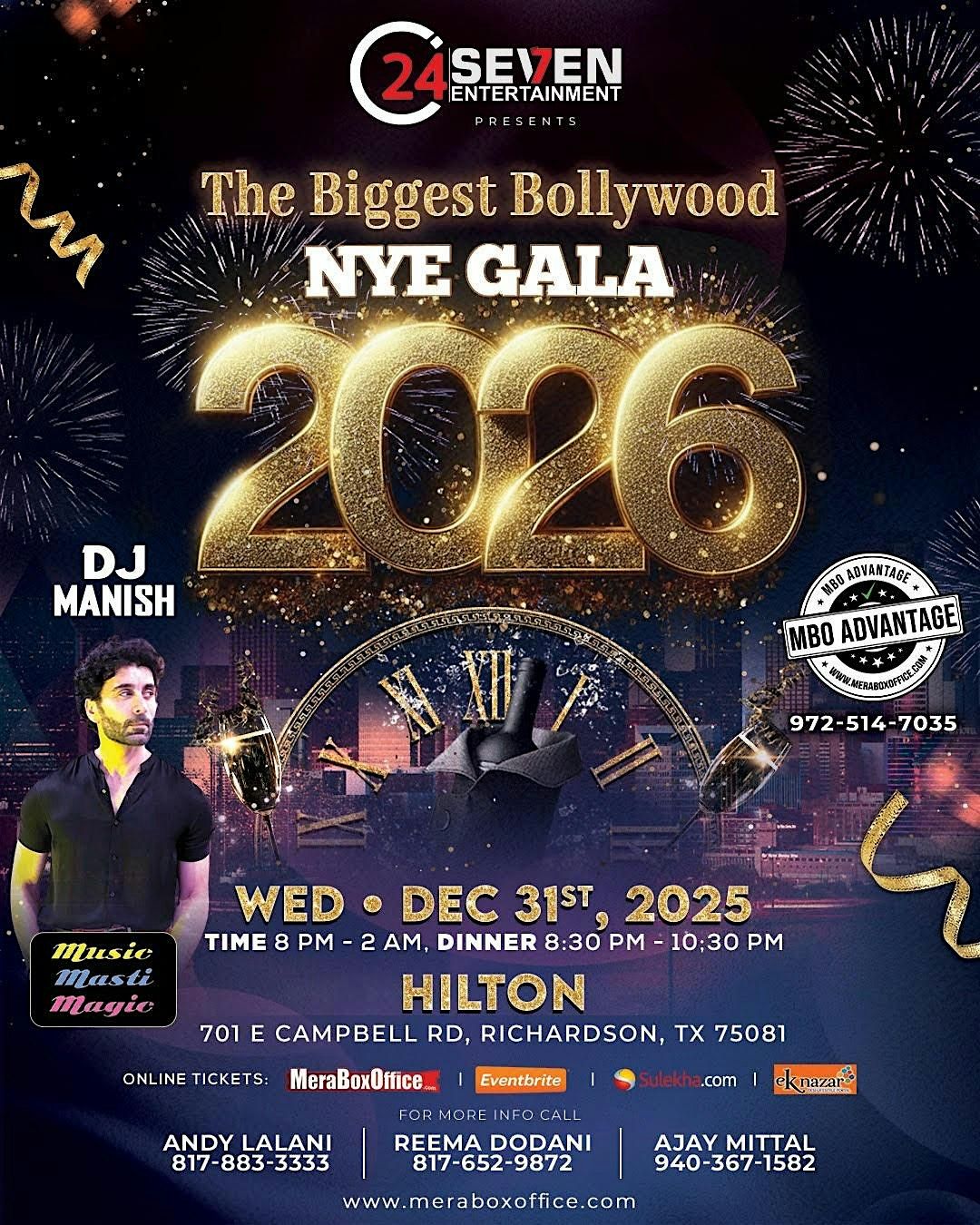 Bollywood NYE 2026 – Dallas’ Biggest Desi New Year Party!