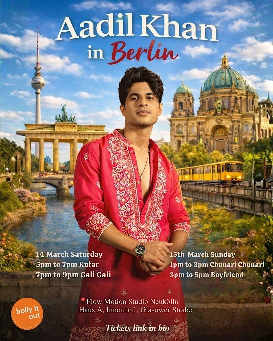 Join us for a vibrant evening of dance with the talented Aadil Khan as he brings the magic of Bollywood to the city! 🌟