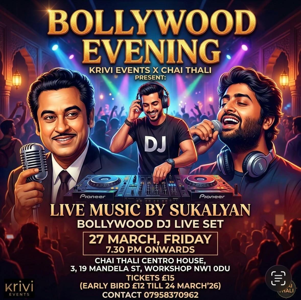 Krivi Events and Chai Thali presents a Bollywood evening on 27 March, Friday 7 pm onwards. After several successful and sold out shows, we bring this to Chai Thali for a cosy warm evening to enjoy an evening with Bollywood Music. We will have a live singing session by Sukalyan Das (@musicbydas) to present covers of Arijit Singh, Palash Sen, Kishore Kumar, KK, Sonu Nigam followed by a Live DJ set by DJ Nav (djnav10) and get grooving to his electrifying tracks of the popular Bollywood bangers. Bring in your friends, family to enjoy this evening with us and feel at home!