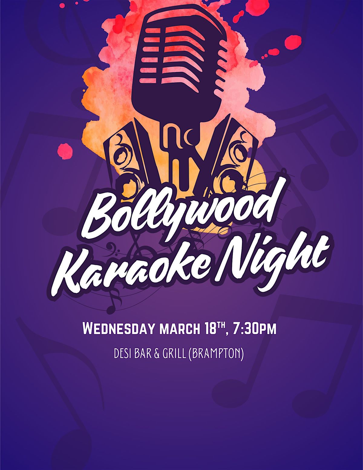 Get ready to sing your heart out at our Bollywood Karaoke Night! Join us at Desi Bar & Grill in Brampton for an epic night filled with your favourite Bollywood hits. Whether you're a superstar or just love to have fun, this is the perfect chance to show off your moves and vocals. Bring your friends, grab a drink, and let's make it a night to remember!