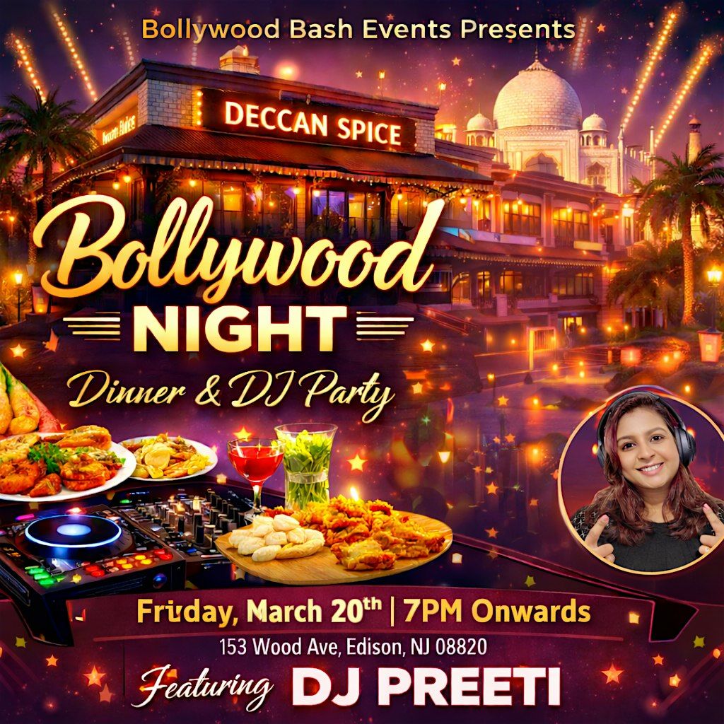 Bollywood Bash Events brings you an evening where great food, music, and vibes come together. Enjoy a delicious dinner at Deccan Spice while the energy builds into a full Bollywood DJ night with DJ Preeti spinning your favorite Bollywood hits.