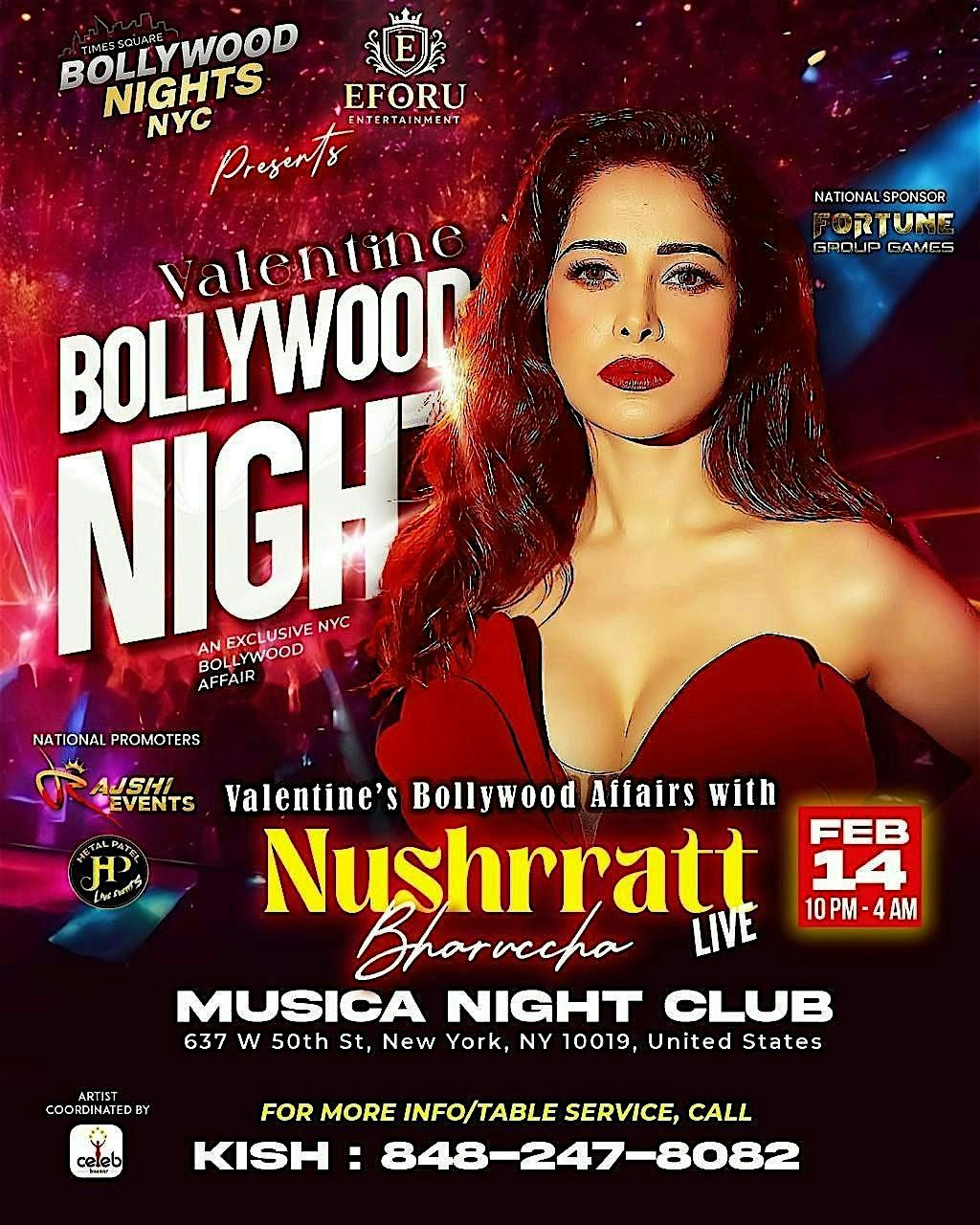 Come join us at Musica Club NYC for a night filled with Bollywood glamour and excitement! Get ready to dance the night away on February 14, 2026 at 10:00 PM (Eastern Time). Let's celebrate love and music with the one and only Nushrratt Bharuccha