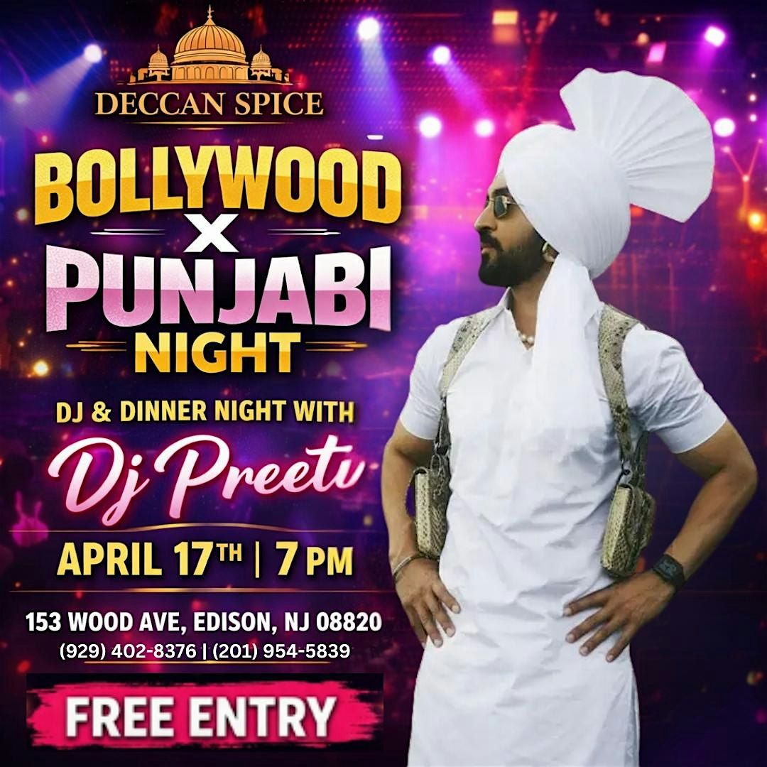Bollywood Bash Events brings you an evening where great food, music, and vibes come together. Enjoy a delicious dinner at Deccan Spice while the energy builds into a full Bollywood DJ night with DJ Preeti spinning your favorite Bollywood hits.