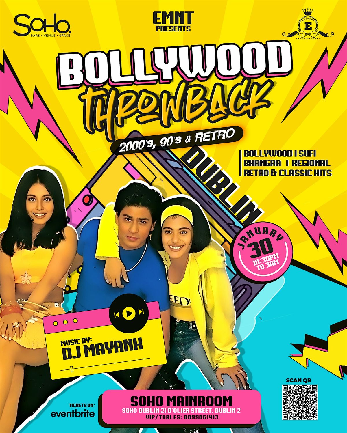EMNT & SoHo presents Bollywood THROWBACK: 2000s '90s Retro Night. Let's celebrate this one-of-a-kind Bollywood Night with carefully curated music by Dublin's very own .
