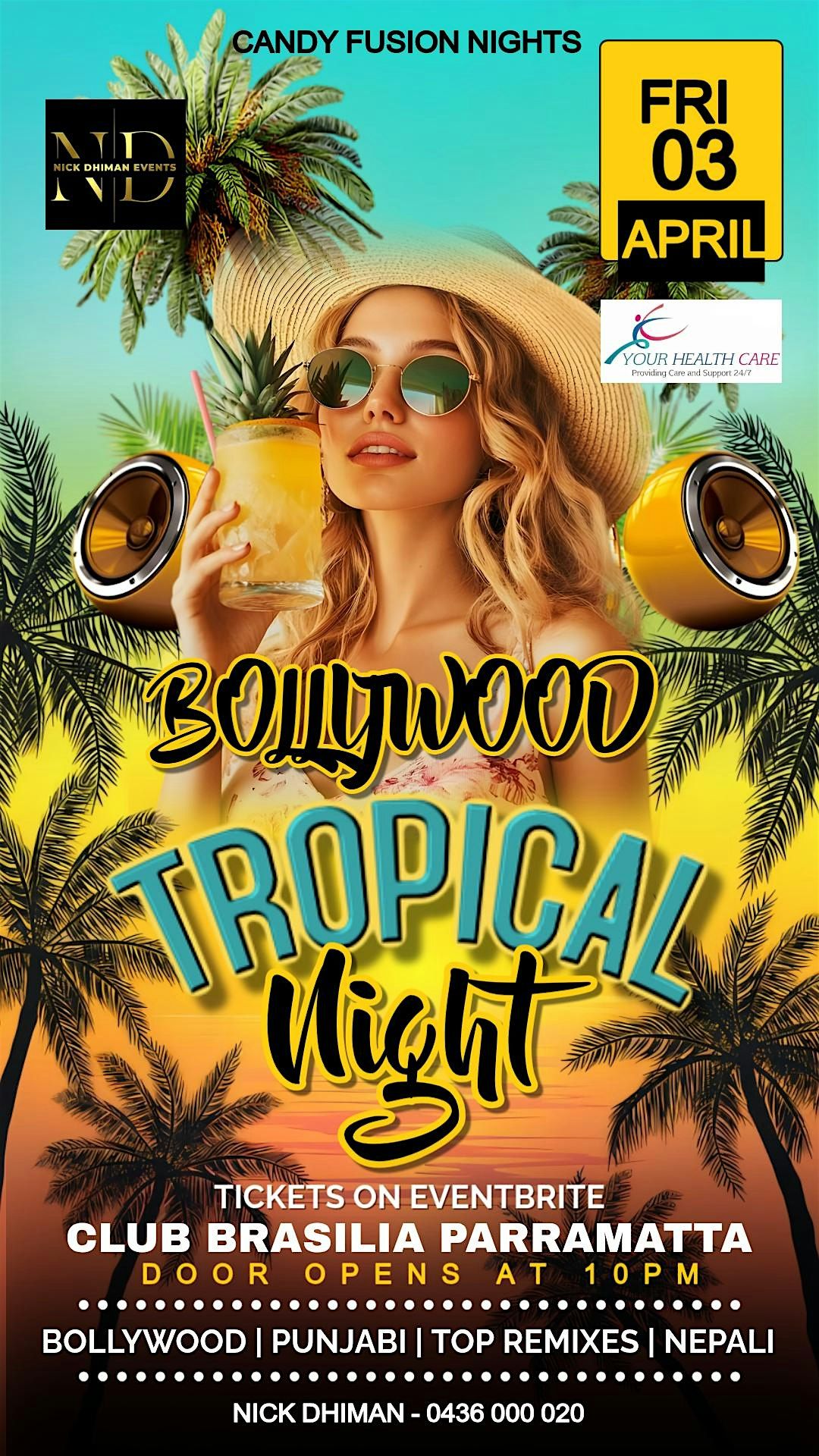 Get ready for a sizzling **Bollywood Tropical Night** with Candy Fusion Nights & Nick Dhiman Events! This vibrant Desi party kicks off the Easter long weekend in style perfect for unwinding, dancing, and celebrating under the tropical vibes before the public holidays hit (Good Friday on 3 April starts the 4-day break)!