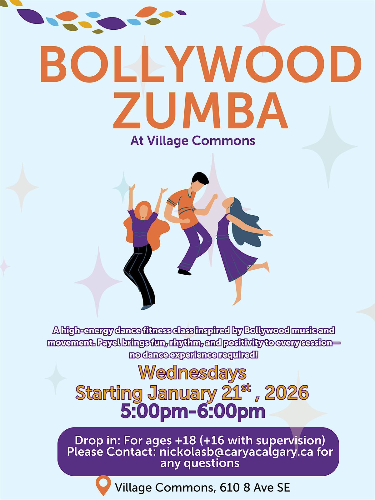 Welcome to Bollywood Zumba by Carya Calgary! Get ready to dance your heart out at our event located at 201, 610 8 Avenue S.E., Calgary, Alberta, T2G 0M1. Join us on Wednesdays at 5:00 PM (Mountain Time) for a night of energetic moves and groovy tunes.