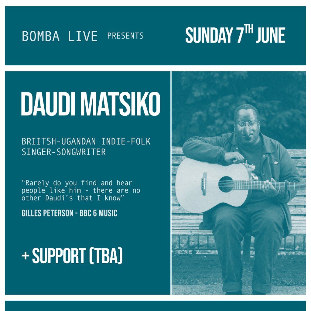 Join us on Sunday 7th June at Bomba as we welcome British-Ugandan indie folk singer-songwriter Daudi Matsiko.Music Genres : Indie, Acoustic, Folk