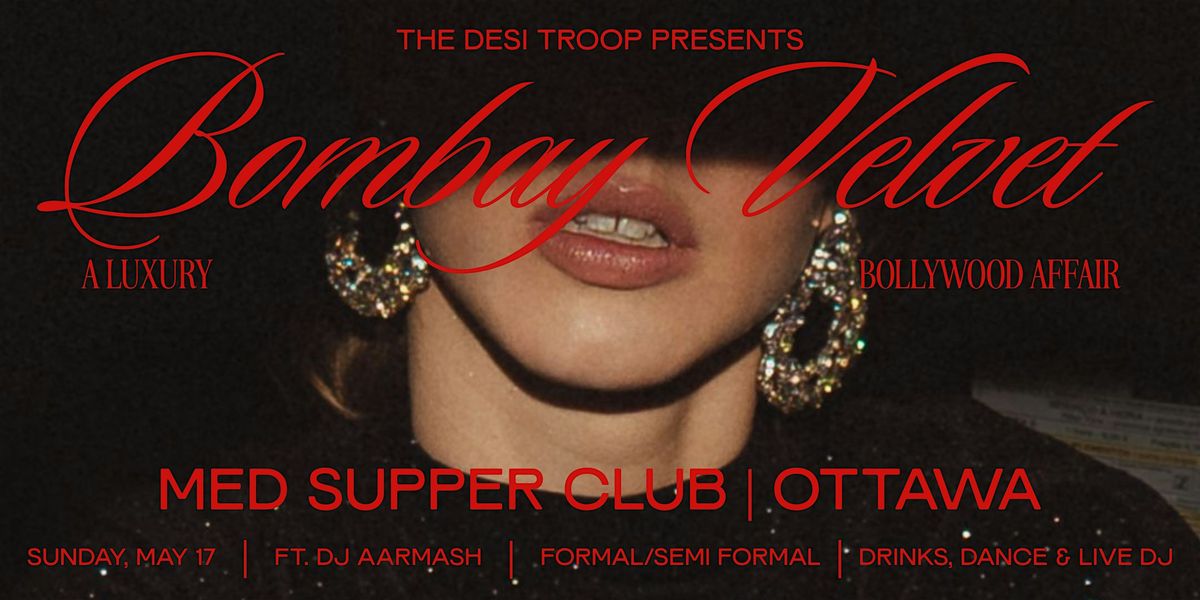 On Sunday, May 17, The Desi Troop brings Bombay Velvet to Med Supper Club — the Lansdowne venue that food writers and locals have openly called Ottawa's most luxurious room, with interiors that feel more Dubai than downtown. For one long-weekend night, this is where Bollywood belongs.