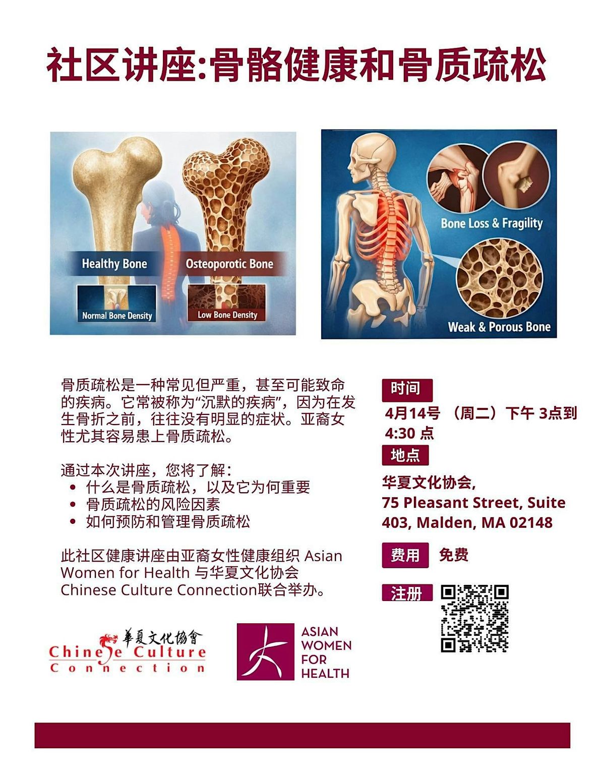 📢 【免费社区健康讲座】骨骼健康与骨质疏松