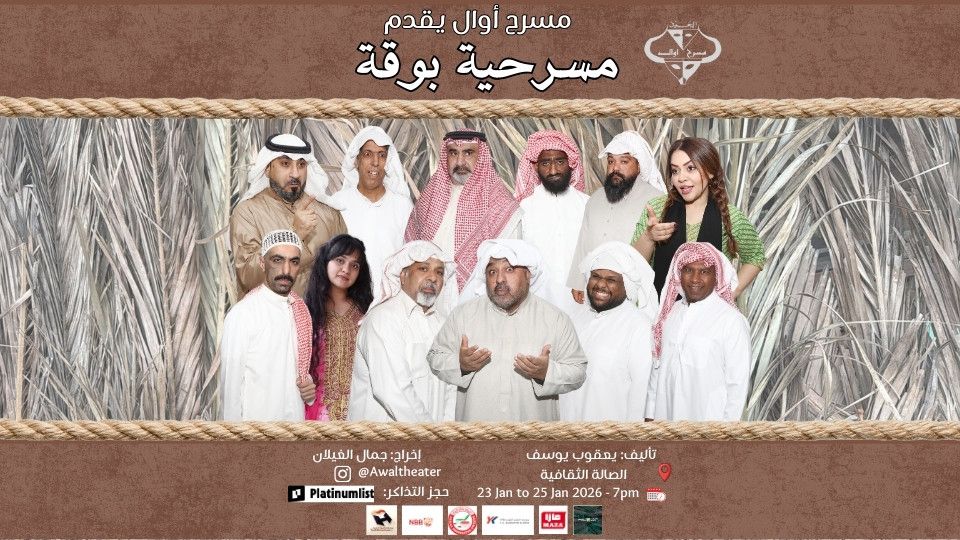 A popular-style comedy play that takes the audience on a laughter-filled journey, presented in a simple, down-to-earth manner. The play relies on wit, lighthearted humor, and smooth dialogue, featuring familiar characters inspired by the pearl diving era and reflecting the social reality of that time with a cheerful, entertaining spirit. It offers the audience an enjoyable theatrical experience that blends laughter, fun, and gentle human messages. A popular-style comedy play that takes the audience on a laughter-filled journey, presented in a simple, down-to-earth manner. The play relies on wit, lighthearted humor, and smooth dialogue, featuring familiar characters inspired by the pearl diving era and reflecting the social reality of that time with a cheerful, entertaining spirit. It offers the audience an enjoyable theatrical experience that blends laughter, fun, and gentle human messages.