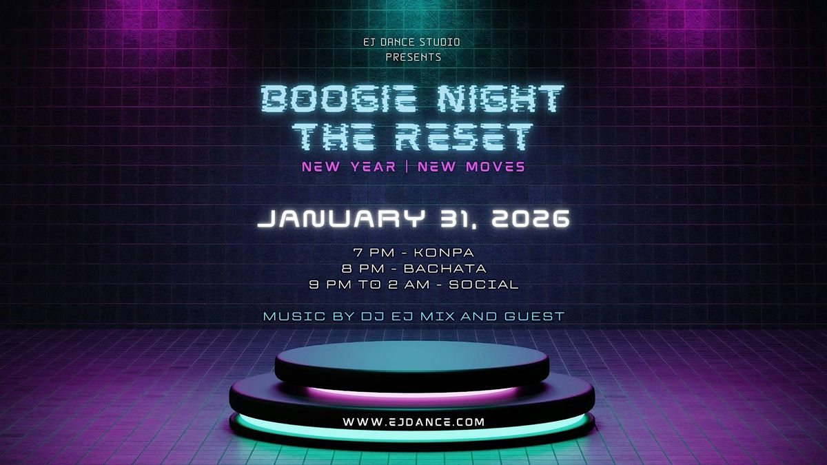 Boogie Night | The Reset is all about fresh energy, intentional movement, and reconnecting through dance. January is your reset button, and weβre pressing it together with focused workshops and a high-vibe social.