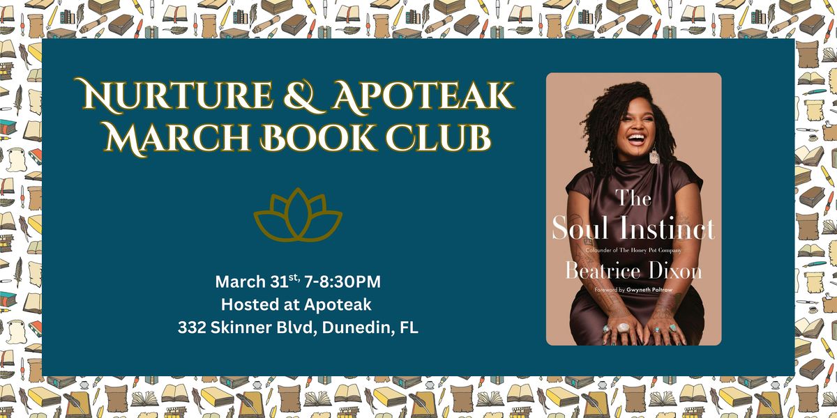 Join our community book club at Apoteak for a lively discussion of The Soul Instinct by Beatrice Dixon, founder of The Honey Pot Company. In this memoir and personal growth guide, Dixon shares how trusting her intuition and following what she calls her “soul instinct” shaped her life and path.