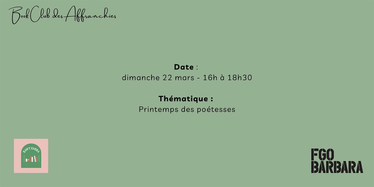 Le Book Club des Affranchies revient le 22 mars. La thématique choisie est "Le printemps des poétesses". À vos recueils de poésie !