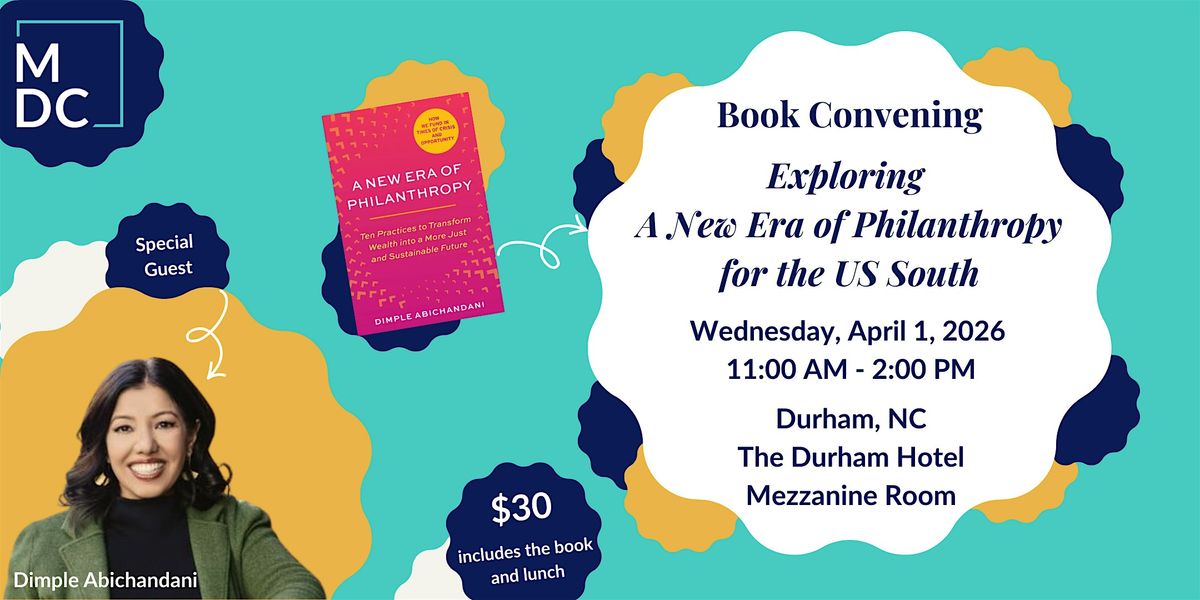 This conversation will be moderated by MDC’s Equity-Centered Philanthropy team, whose work focuses on moving more financial capital to and through communities equitably, and on reshaping narratives about the role and potential of philanthropy in the U.S. South. Learn more at https://mdcinc.org.