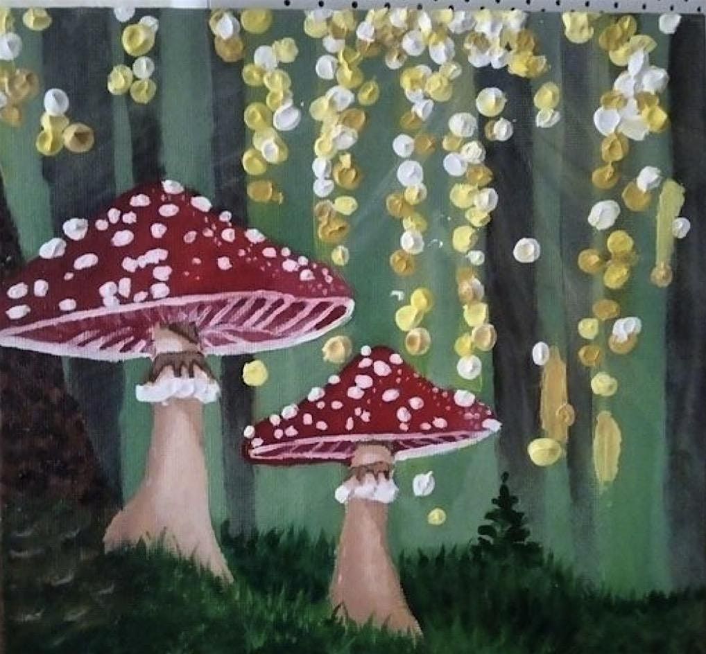 Come get a by step paint class, perfect for canvas on your bookshelf! painting some cute, fantasy mushrooms on a cozy Wednesday evening with me and browse around the new Book Dragons Den Bookstore! Kids welcome with parent supervision.