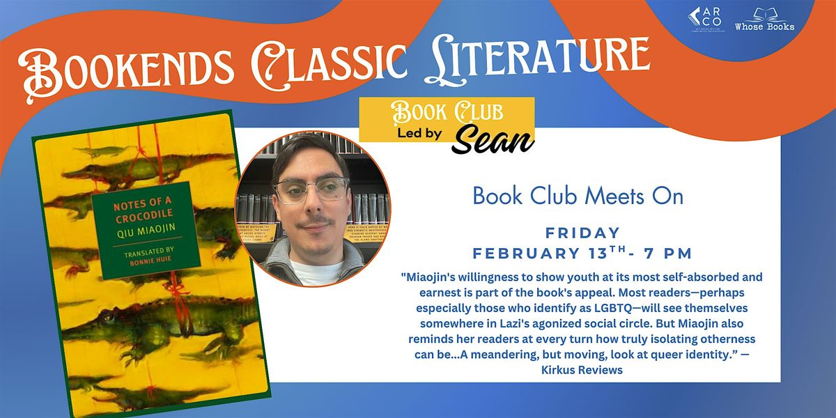 Join us for the February meeting of Bookends Classic Literature Book Club, led by Sean, as we dive into Notes of a Crocodile by Qiu Miaojin, translated by Bonnie Huie.