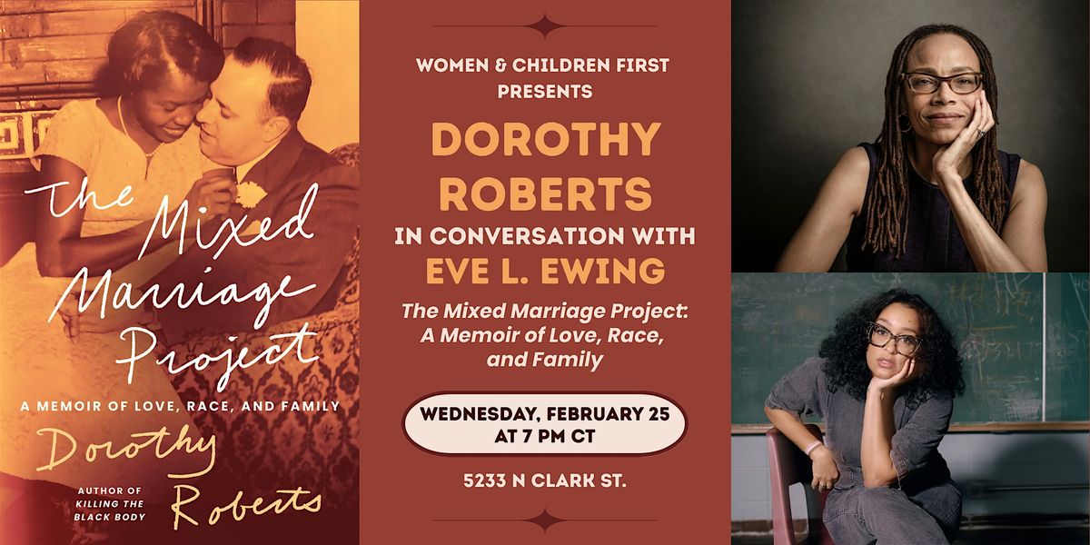 We are thrilled to welcome back Dorothy Roberts for an event to celebrate her newest book, The Mixed Marriage Project: A Memoir of Love, Race, and Family. For this event, Dorothy will be joined in conversation by Eve L. Ewing.