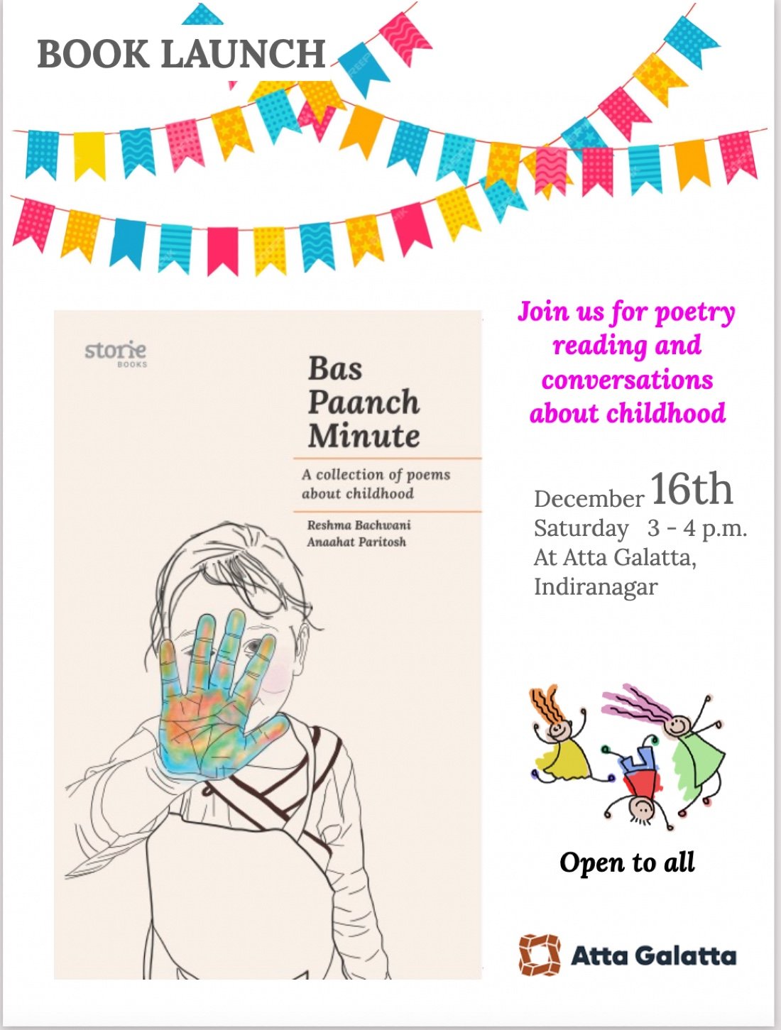 Want to spend a Saturday afternoon listening to poetry and having conversations around Bachpan...come to @attagalatta on 16th December at 3 p.m. for the BOOK LAUNCH of Bas Panch Minute - A collection of poems about childhood.