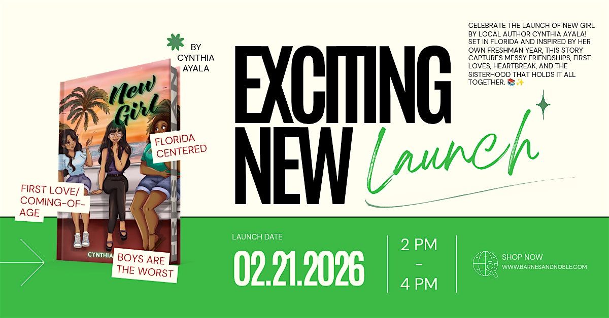 Celebrate the launch of New Girl with local author Cynthia Ayala. Meet the author and get your copy signed at this special release-day event