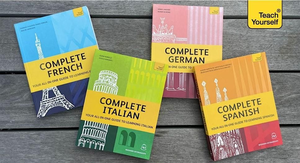 The event includes four separate language presentations by the authors, followed by a panel discussion on how to write a language book and how to work with a publisher.