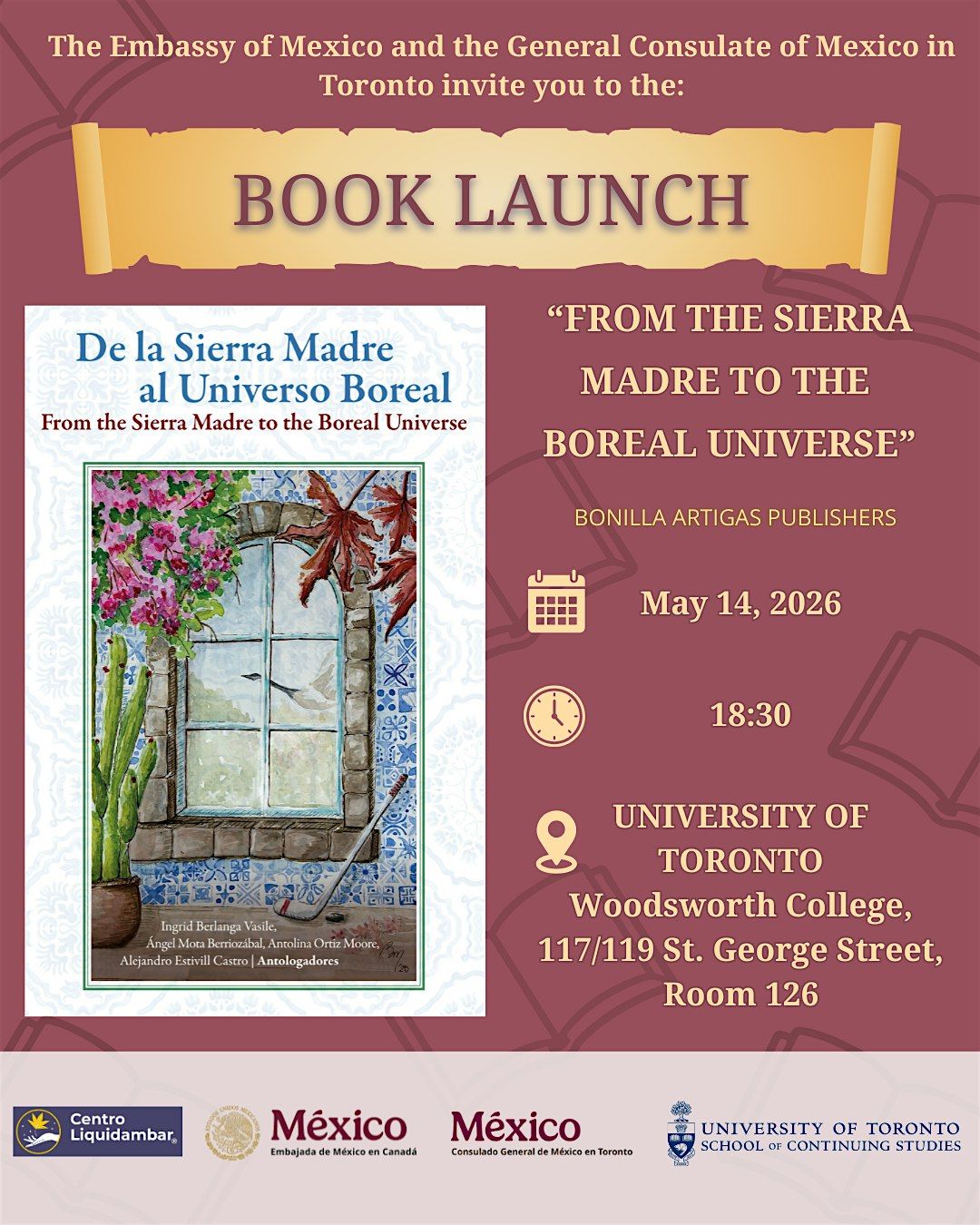The Embassy of Mexico and the General Consulate of Mexico in Toronto invite you to the book launch: