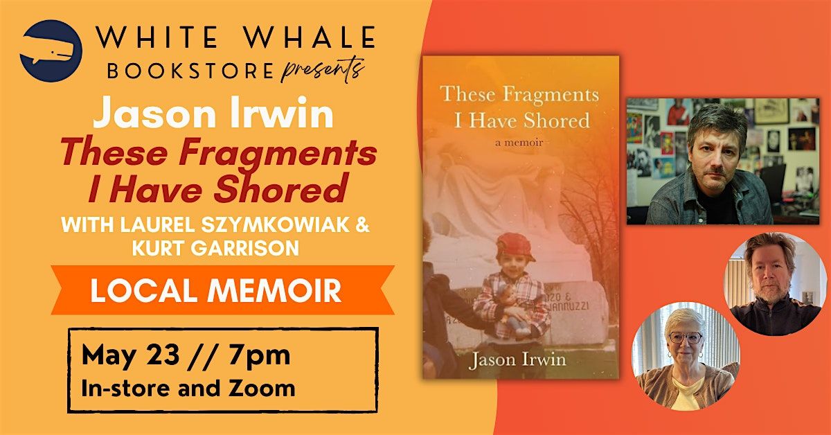 At White Whale, it is our joy and privilege to celebrate local writers. We are honored to celebrate Pittsburgh poet Jason Irwin for the launch of his debut memoir, These Fragments I Have Shored. Irwin will be joined by local writers Laurel Szymkowiak and Kurt Garrison.