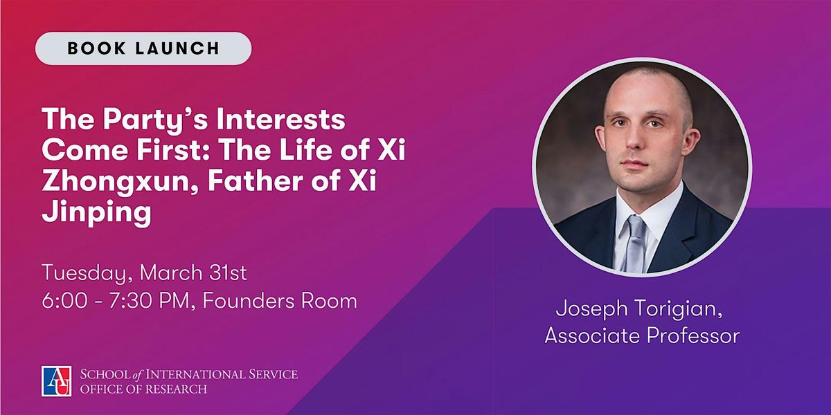 SIS Research invites you to a book launch for Professor Joseph Torigian's new book, The Party's Intersts Come First: The Life of Xi Zhongxun, Father of Xi Jinping.